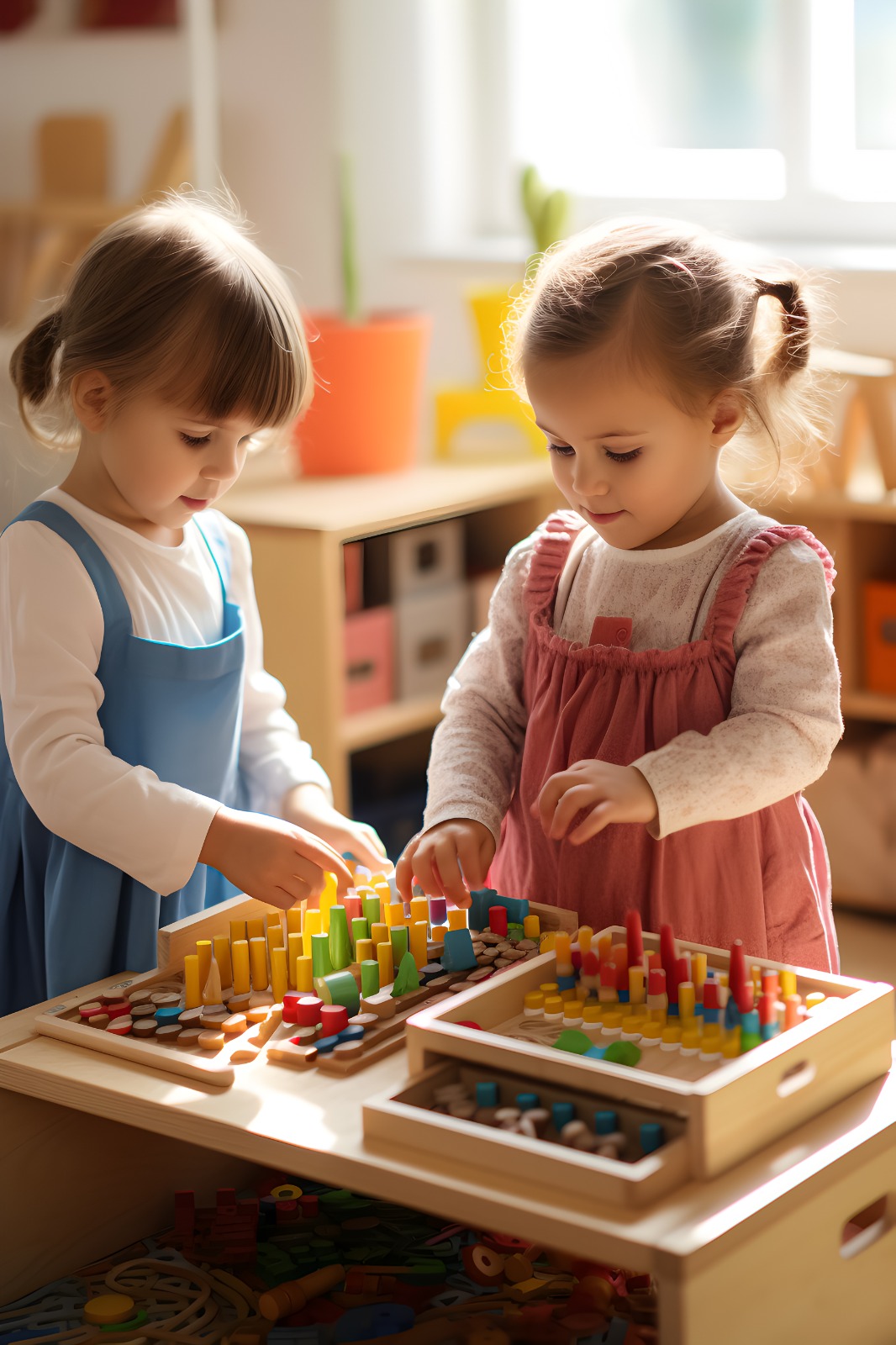 Öğretmenlerimizin rehberliğinde seçilmiş doğal, geri dönüştürülmüş ve pedagojik materyal çeşitliliği sunuyoruz. Farklı doku ve formdaki bu materyaller, çocukların duyusal algılarını zenginleştirir, problem çözme becerilerini geliştirir ve yaratıcılıklarını kısıtlamadan deney yapmalarına olanak tanır.